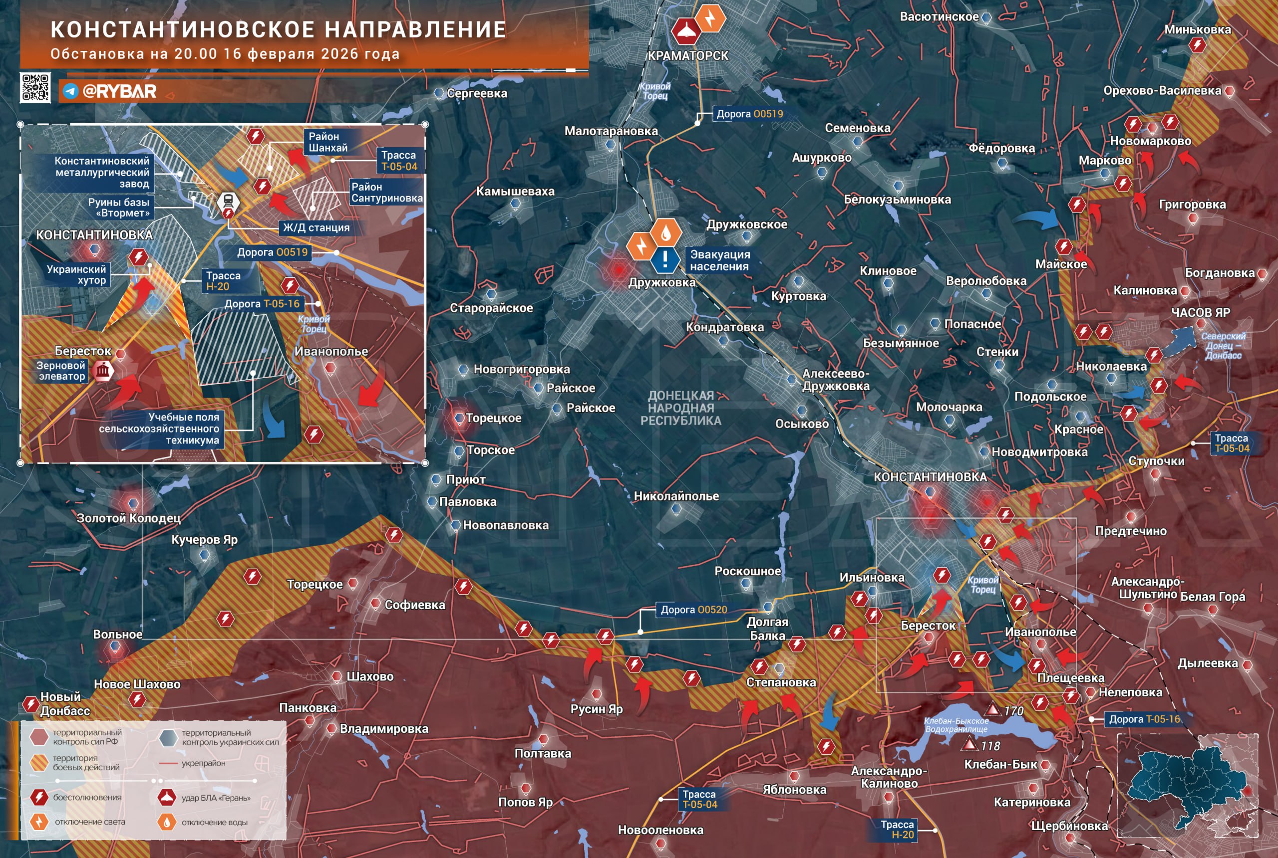 С южной окраины города также появились данные о действиях малых групп в районе «Украинский хутор». Закрепиться там пока не удалось, опубликованные материалы, вероятно, носят архивный характер. Вместе с тем сам факт продвижения позволяет говорить о зачистке Берестка и переходе населённого пункта под контроль.