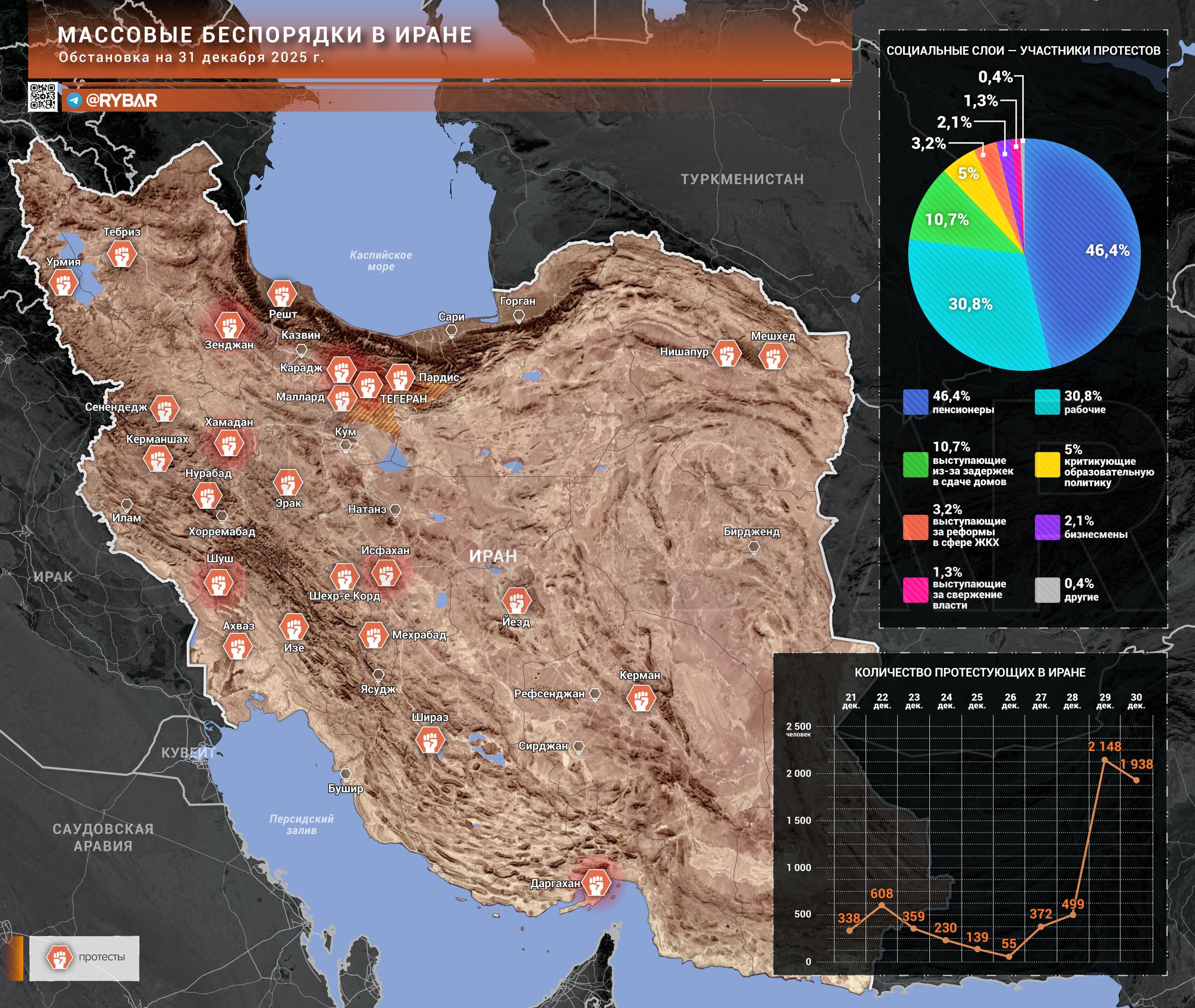 Иран снова трясет. Как и ожидалось, конец года в Исламской республике стал жарким: в стране вновь начали массовые протесты, которые в некоторых регионах переросли в беспорядки и столкновения с силовыми структурами.