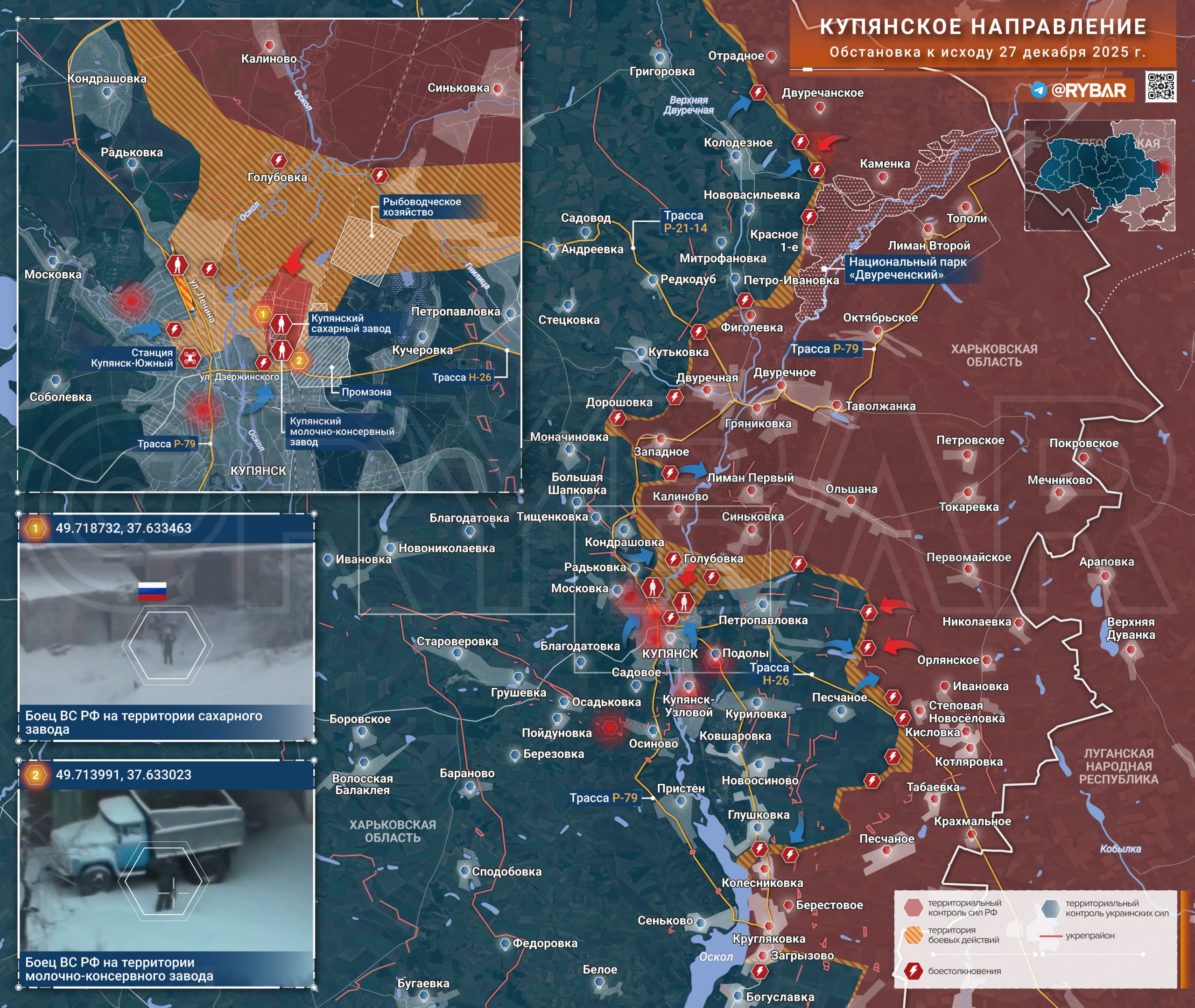 Подтверждается информация об удержании русской армией северных и северо-восточных окраин. Даже несмотря на брошенные «ва-банк» большие силы личного состава ВСУ, как мы и писали, полный контроль над Купянском противник установить не смог.