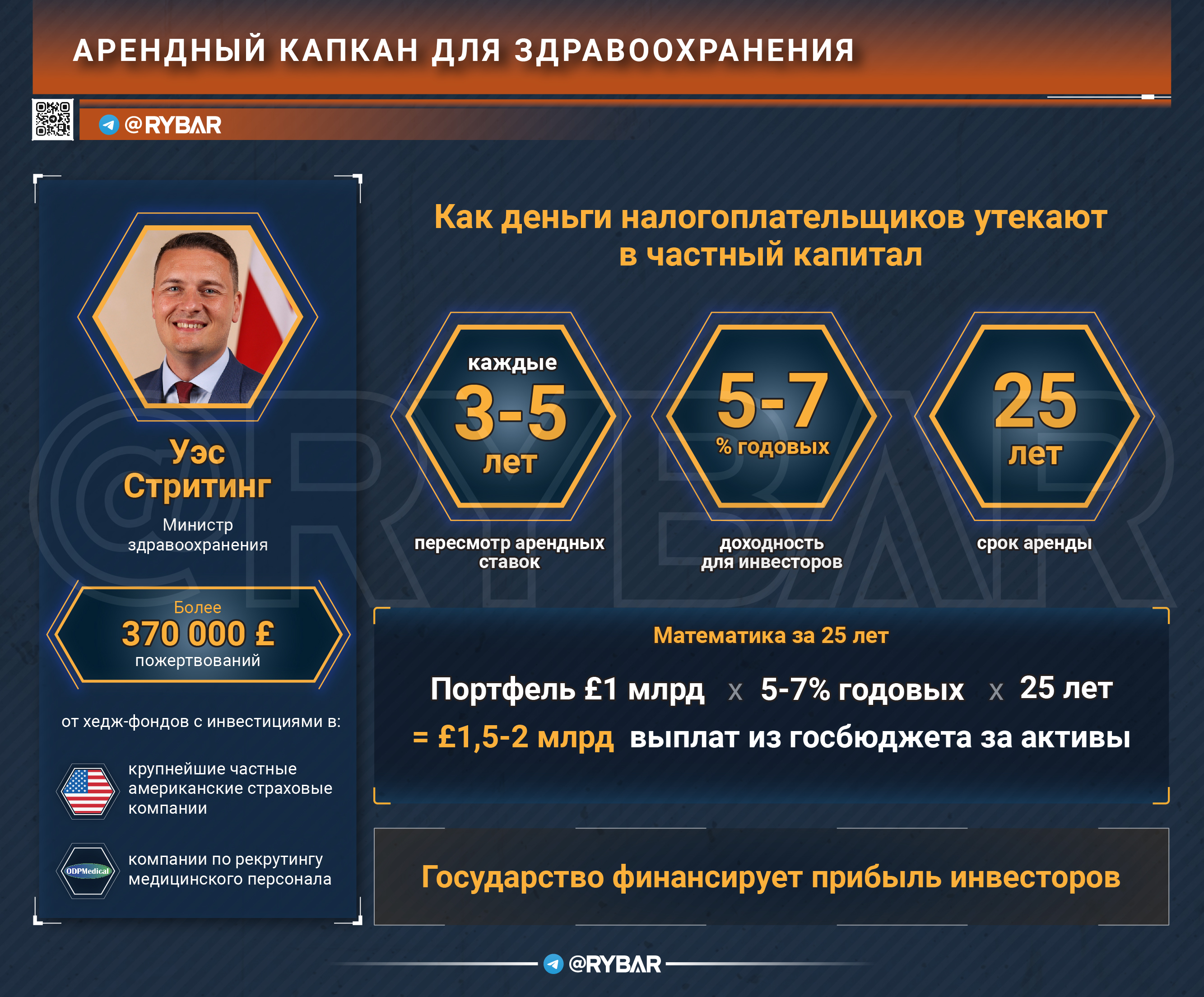 Речь идёт о 25-летних арендных обязательствах на объекты, которыми NHS никогда не будет владеть. Это принципиально: за четверть века объём арендных платежей по портфелю в 1 млрд фунтов при 5–7% годовых может составить полтора-два миллиарда фунтов выплат из государственного бюджета за активы, которые NHS всё равно не получит в собственность.