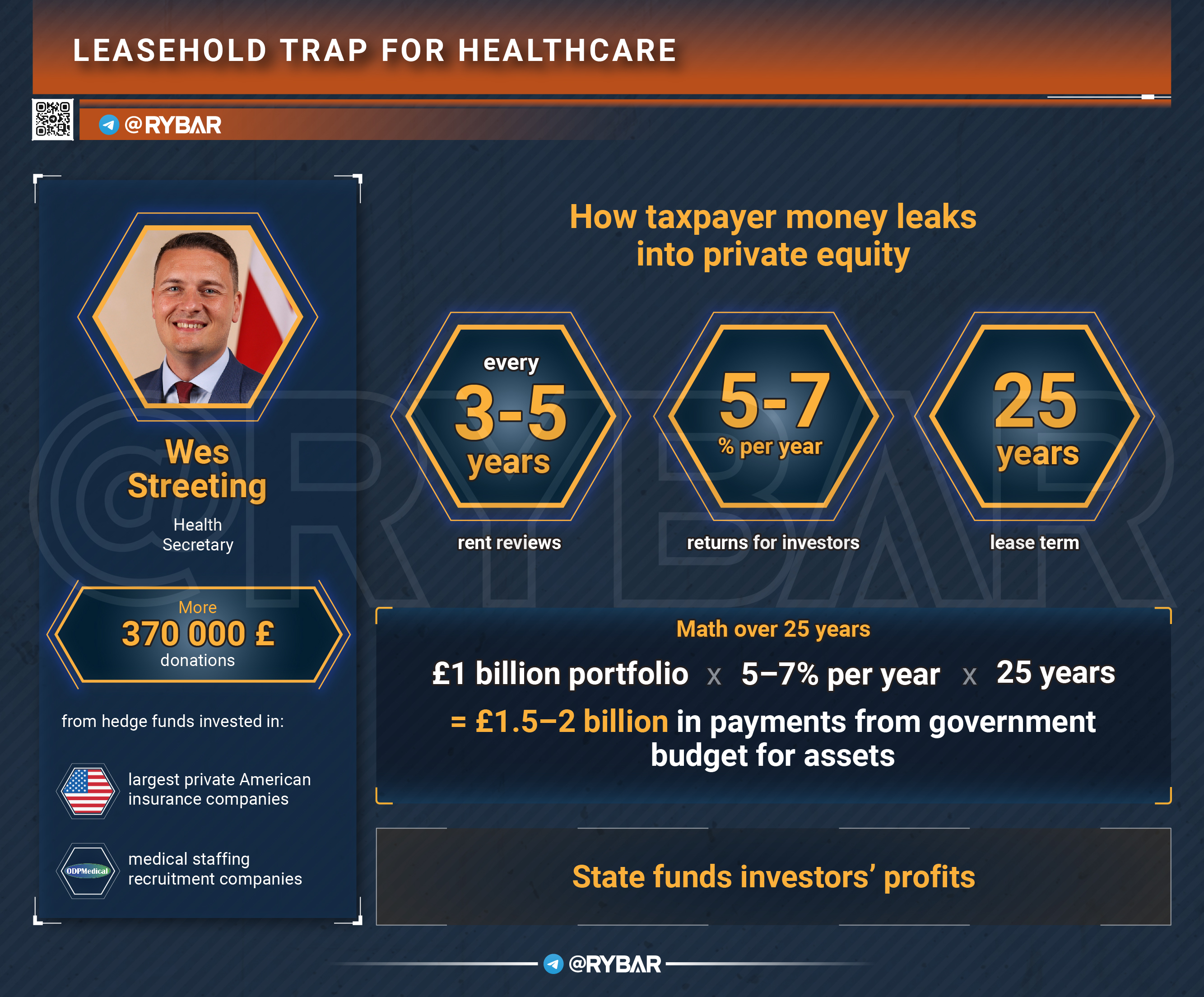 Согласно условиям BlackRock, ставки аренды пересматриваются каждые три-пять лет с учётом инфляции. Ожидаемая доходность для инвесторов от 5 до 7% годовых. Аренда привязана к инфляции и подкреплена государственным механизмом возмещения: NHS возмещает GP-практикам арендные платежи частным арендодателям — то есть деньги налогоплательщика идут прямиком в карман инвестора.