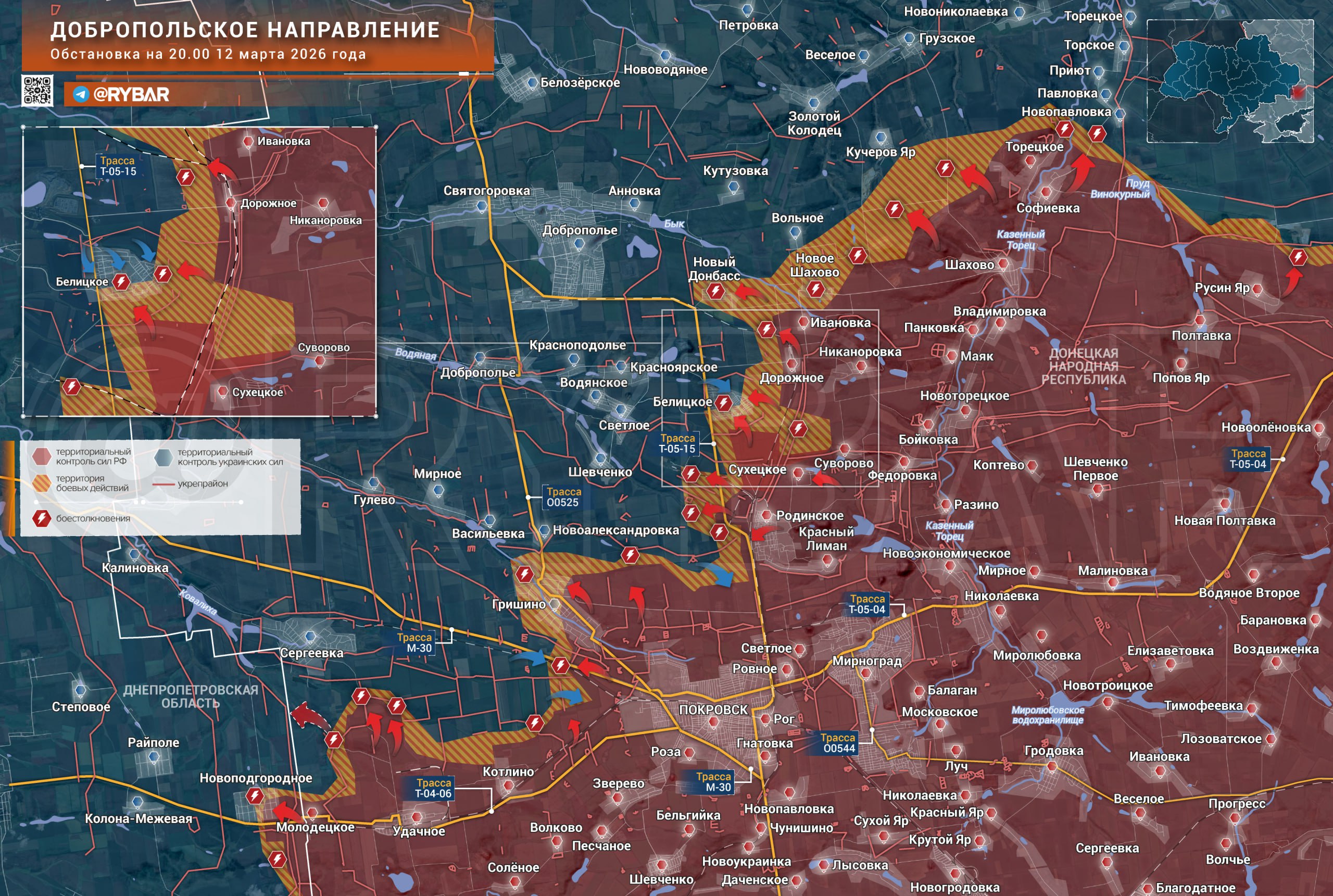 На Добропольском направлении появились свидетельства о контратаках украинских формирований на юге населенного пункта Белицкое, что подтверждает более раннюю информацию о выходе российских подразделений к этому населенному пункту. Город расположен на трассе, ведущей напрямую к Доброполью.