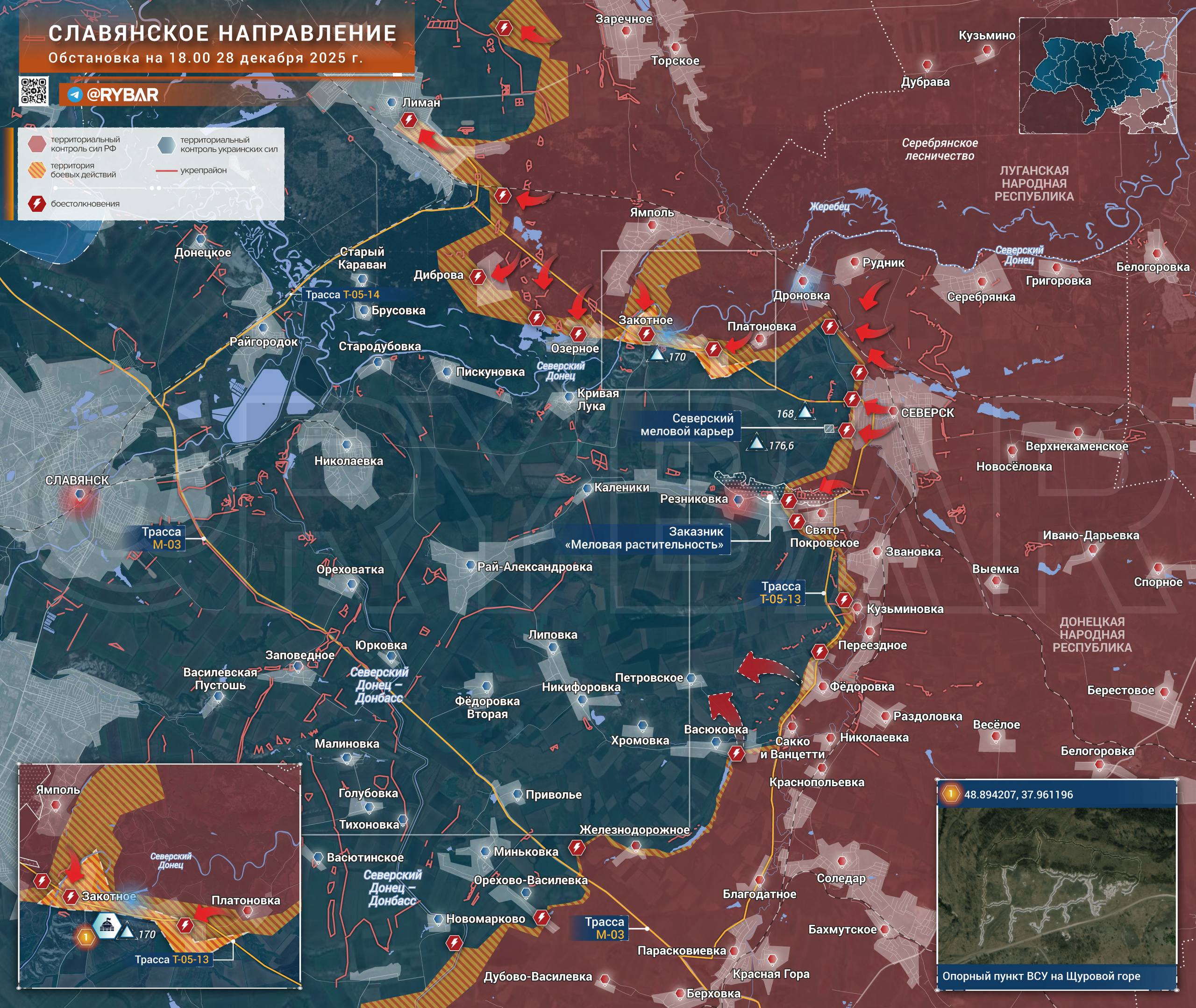Также отдельные источники говорят о продвижении российских подразделений на территории заказника «Меловая растительность» в районе Резниковки. Выдавив украинские формировнаия из массива, ВС РФ смогут установить огневой контроль над западным въездом в населенный пункт.