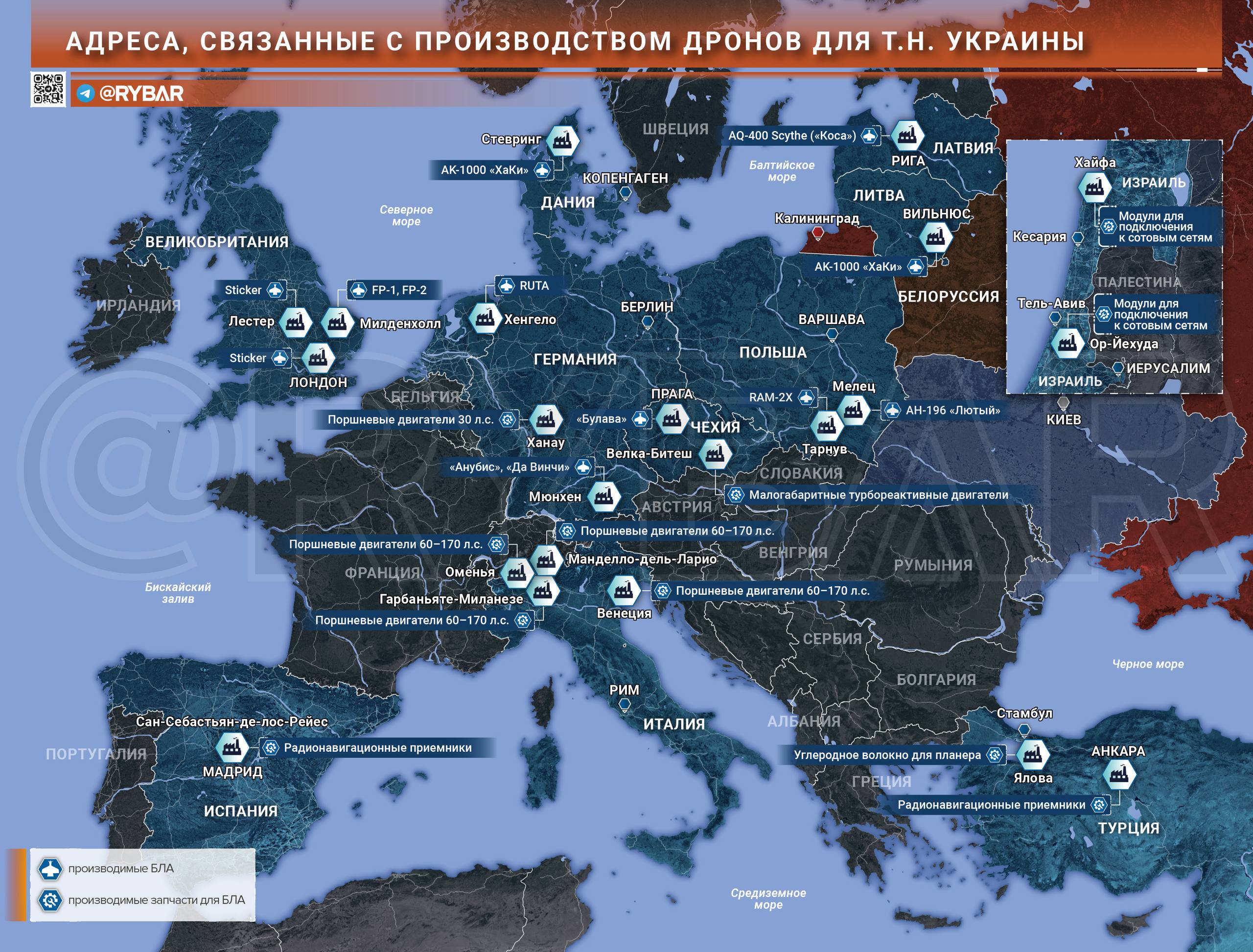 Этот список даже не назвать полным, ведь в реальности таких предприятий — сотни. А китайских компаний в нем даже нет, хотя из Поднебесной идёт львиная доля компонентов для украинских беспилотников.