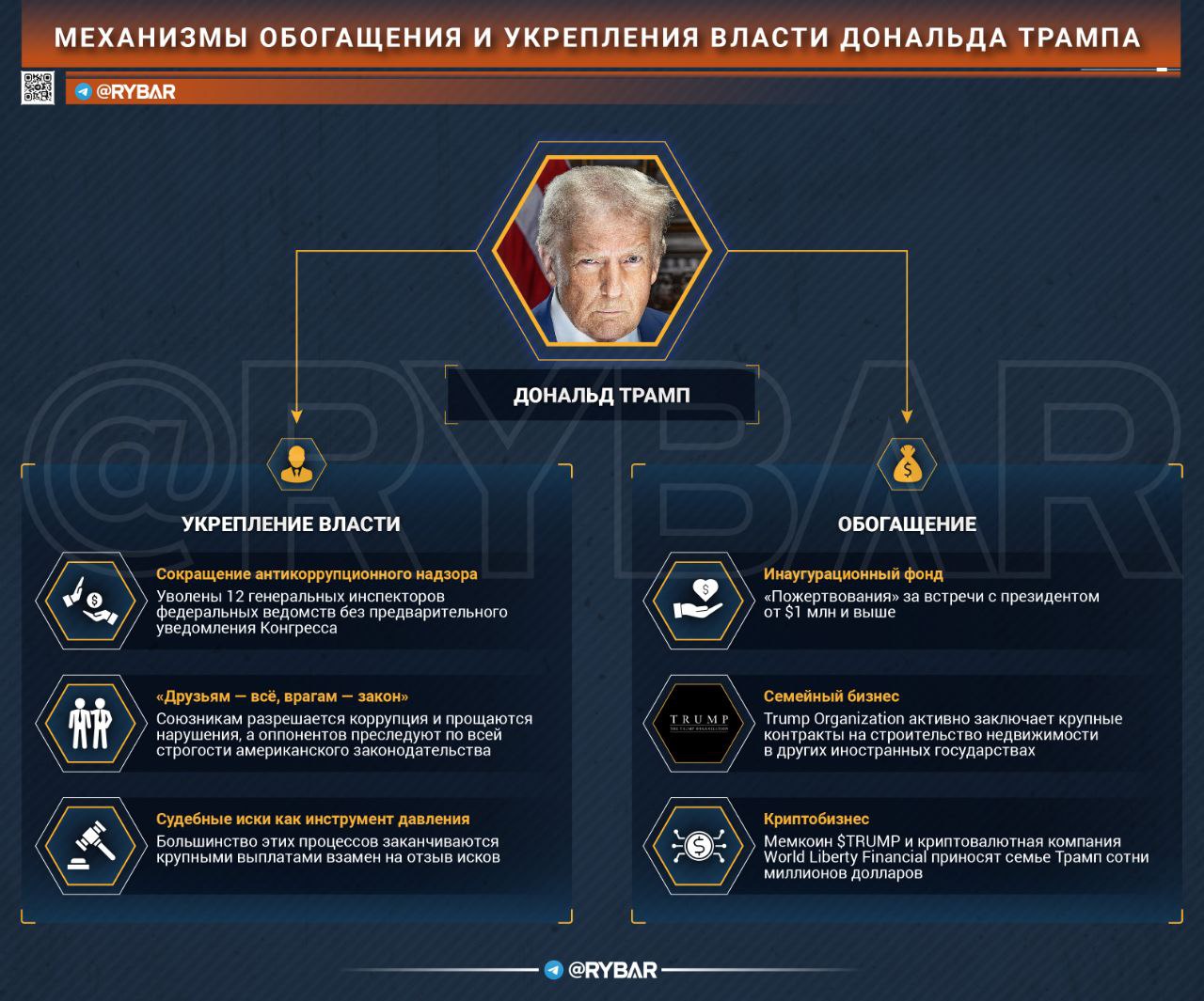 За девять месяцев второго президентского срока Трампа стали вырисовываться контуры не только механизмов подчинения и разрушения влияния особо несговорчивых, но и способов его личного обогащения.