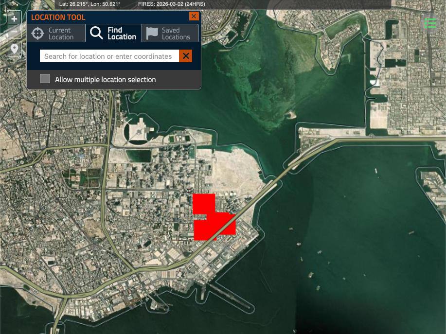 Из всех пораженных иранцами целей на территории монархий Персидского залива минувшей ночью сильнее прочих досталось снова Бахрейну. В Сети опубликовали кадры чадящей базы 5-го флота ВМС США в Джуффейре. Всего было 9-10 прилётов. На картах FIRMS очаги активного возгорания тоже есть.