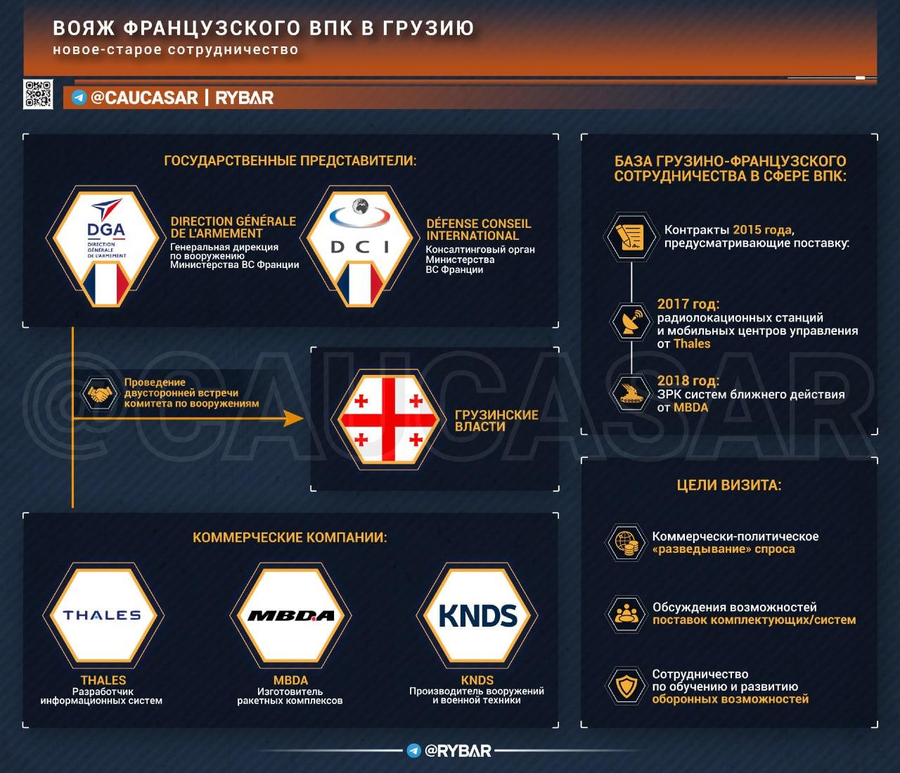 Текущий визит стал логичным продолжение линии, где государственные структуры (DGA, DCI) и частный ВПК прощупывали новые возможности. Которых, к слову, грузинское руководство продолжает ожидать от представителей НАТО.