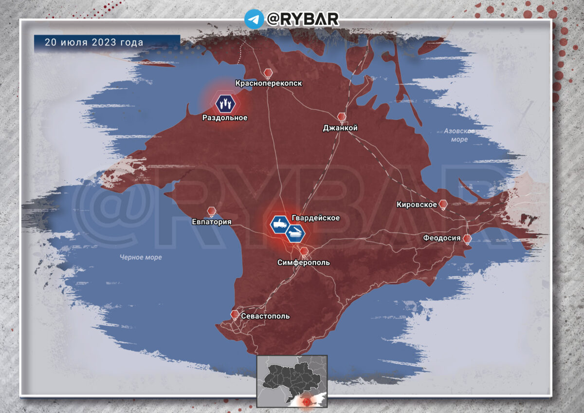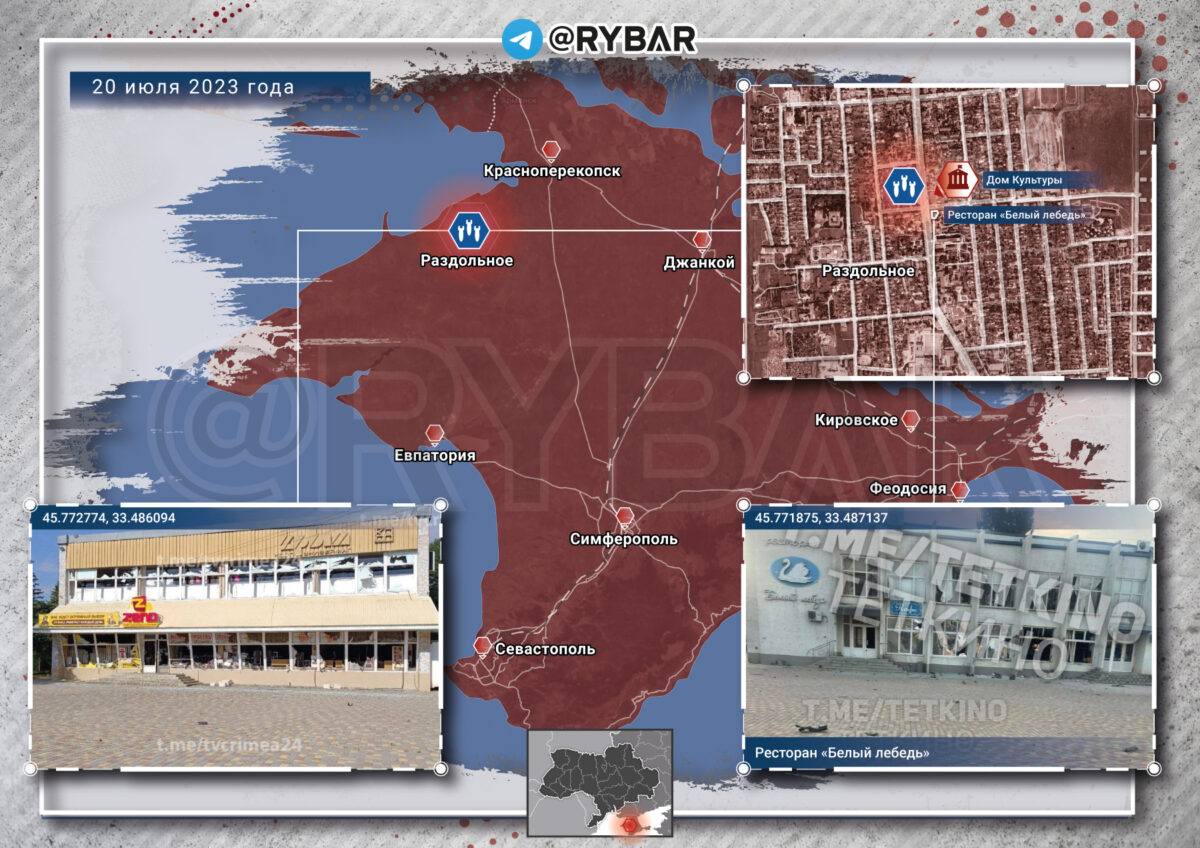 Утром украинский беспилотник нанес удар по поселку городского типа Раздольное на северо-западе Крымского полуострова. Повреждения получили несколько административных зданий, дом культуры, детский центр, мебельный магазин и ресторан. В нескольких жилых домах и детском саде выбило окна.