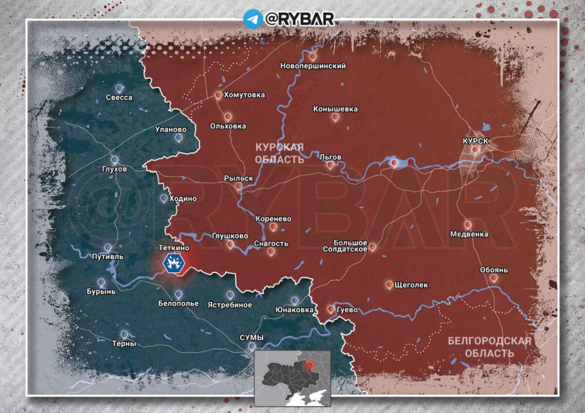 Украинские формирования продолжают наносить удары по приграничным населенным пунктам Курской области. Не менее семи снарядов было выпущено по поселку Теткино, в результате чего горели три жилых дома, оперативные службы потушили пожар. Повреждения также получила водонапорная башня, однако в населенном пункте сохраняется стабильная подача воды, жертв среди населения нет.