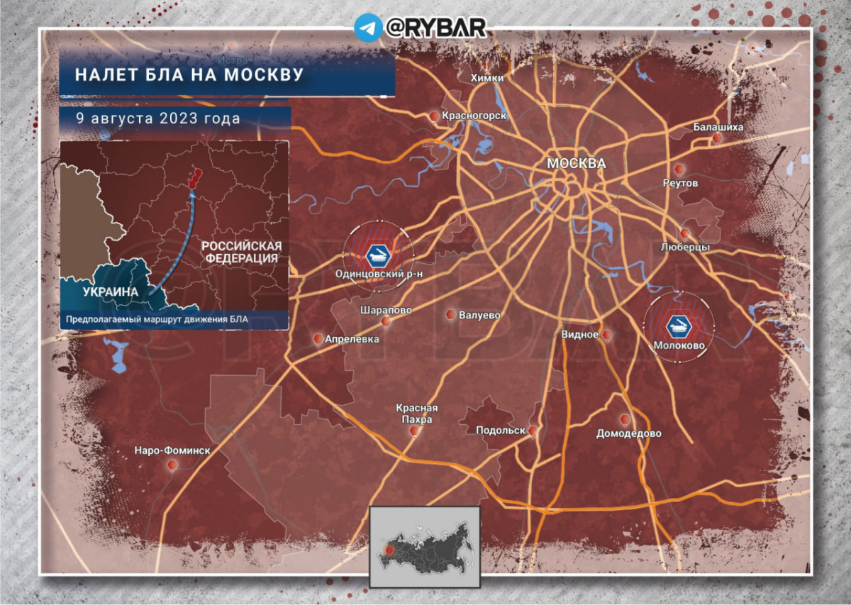 Согласно сообщениям в Сети, БЛА вылетели со стороны Сумской области минувшей ночью. Два беспилотника были сбиты в Московской области. Один — в Одинцовском районе недалеко от Минского шоссе, второй – неподалеку от Домодедово в районе села Молоково.