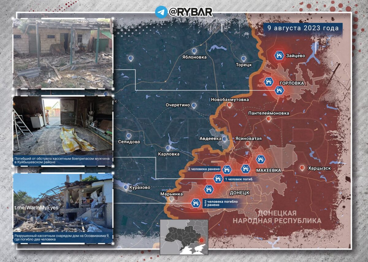 В Светлодарске в результате прямого попадания ракеты в дом из РСЗО HIMARS одна женщина скончалась на месте от осколочных ранений, еще восемь человек получили ранения разной степени тяжести. В Горловке в Центрально-Городском районе обширные повреждения получила школа №55 и прилегающие дома. Под удар на протяжении дня в том числе попали Макеевка, Зайцево, Ясиноватая и Старомихайловка: информация о раненных и пострадавших не поступала, на данный момент обстрел всей Донецкой агломерации продолжается.