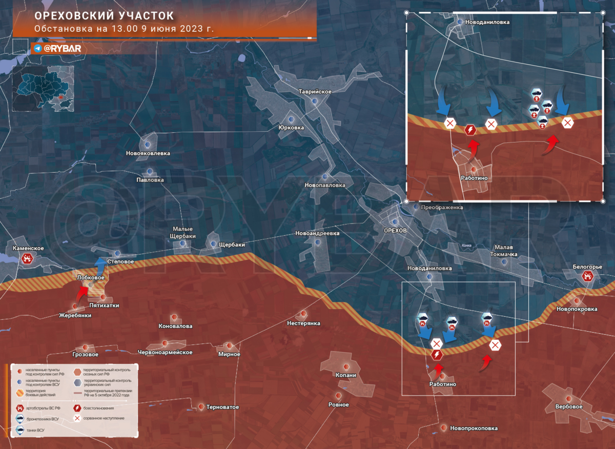 На протяжении нескольких дней украинские формирования предпринимают попытки прорыва российской обороны на Запорожском направлении. Более суток продолжаются интенсивные бои на рубеже Работино — Вербовое.