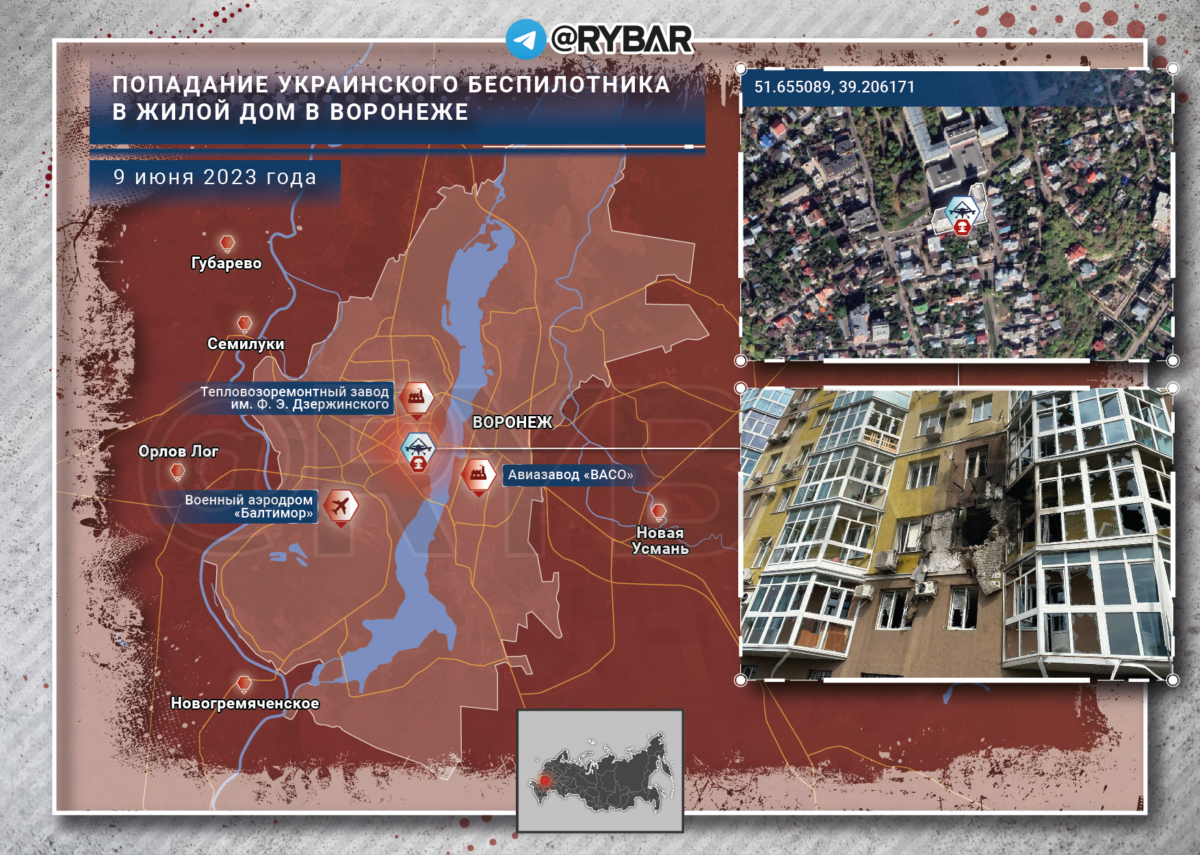 Одновременно с этим ВСУ вновь нанесли удары по прифронтовым и тыловым населенным пунктам России. Помимо многострадальных Белгородской и Курской областей, украинский беспилотник достиг Воронежа: пострадали три мирных жителя.