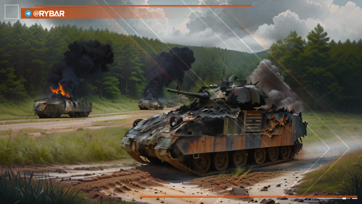 Судя по имеющимся кадрам, украинские формирования за последние дни потеряли не менее 54 единиц техники. В их числе танки Leopard 2, БМП Bradley, БТР VAB и M113, БРЭМ и другие образцы, установить тип которых затруднительно из-за их полного сгорания. Как минимум часть целей, включая американские Bradley, уничтожили вертолеты армейской авиации Ка-52, что подтверждено кадрами объективного контроля.