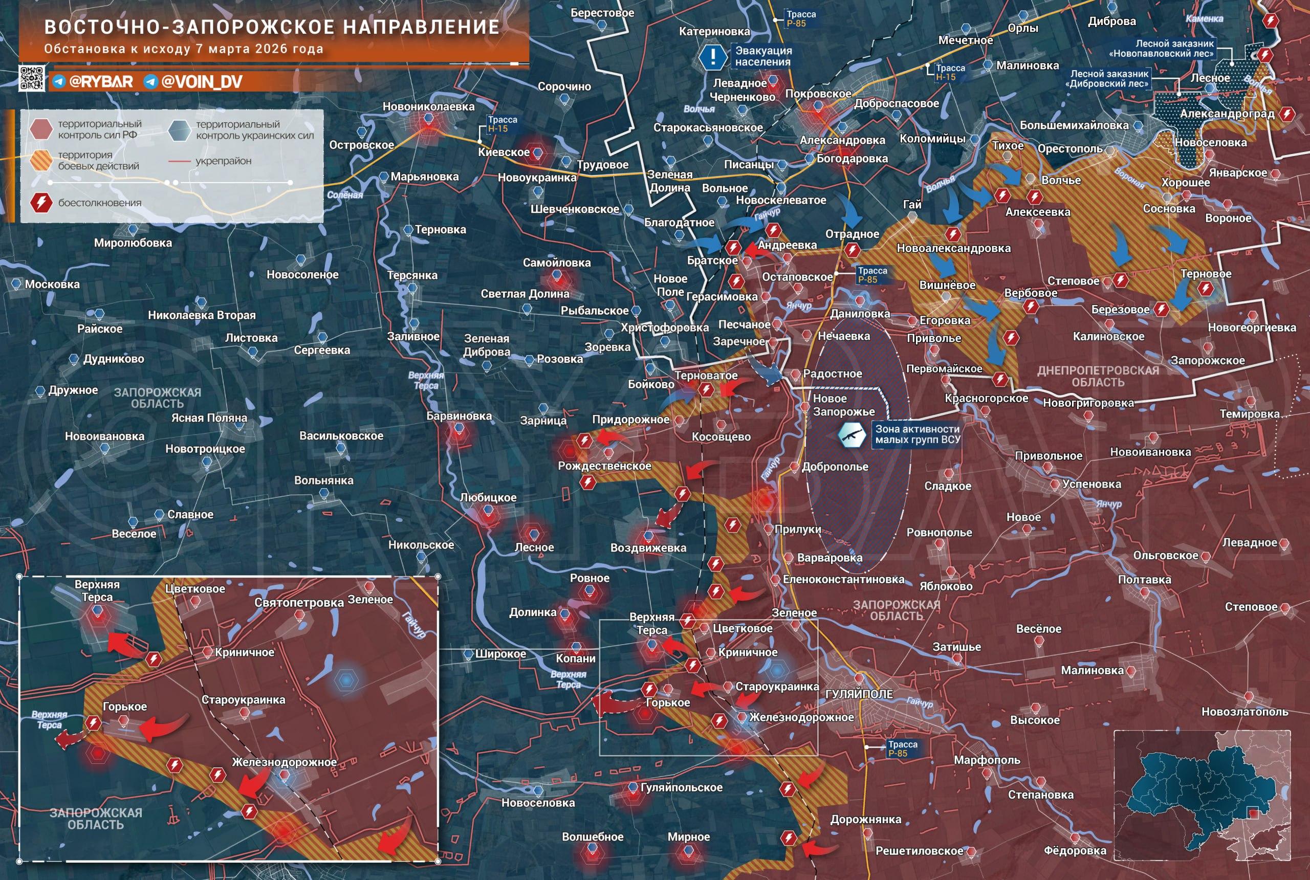 После некоторой тактической паузы, вызванной необходимостью перегруппировки и эвакуации личного состава, противник возобновил атаки при поддержке бронетехники в районе Орестополя. Обстановка остается напряженной, однако российские войска благодаря проведенной ранее переброске резервов отражают контратаки противника.