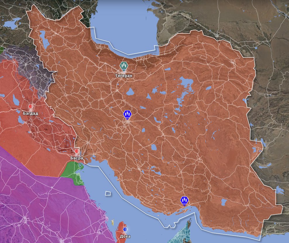 В Тегеране тем временем продолжает гореть нефть, разлившаяся после недавних ударов по НПЗ. Нефть растеклась по дренажным системам некоторых районов, при этом пламя не погасло. Столица республики заполнилась токсичным дымом, экологическая ситуация в городе критическая. Но достанется не только иранцам — облака дыма относит в сторону Средней Азии и Китая.