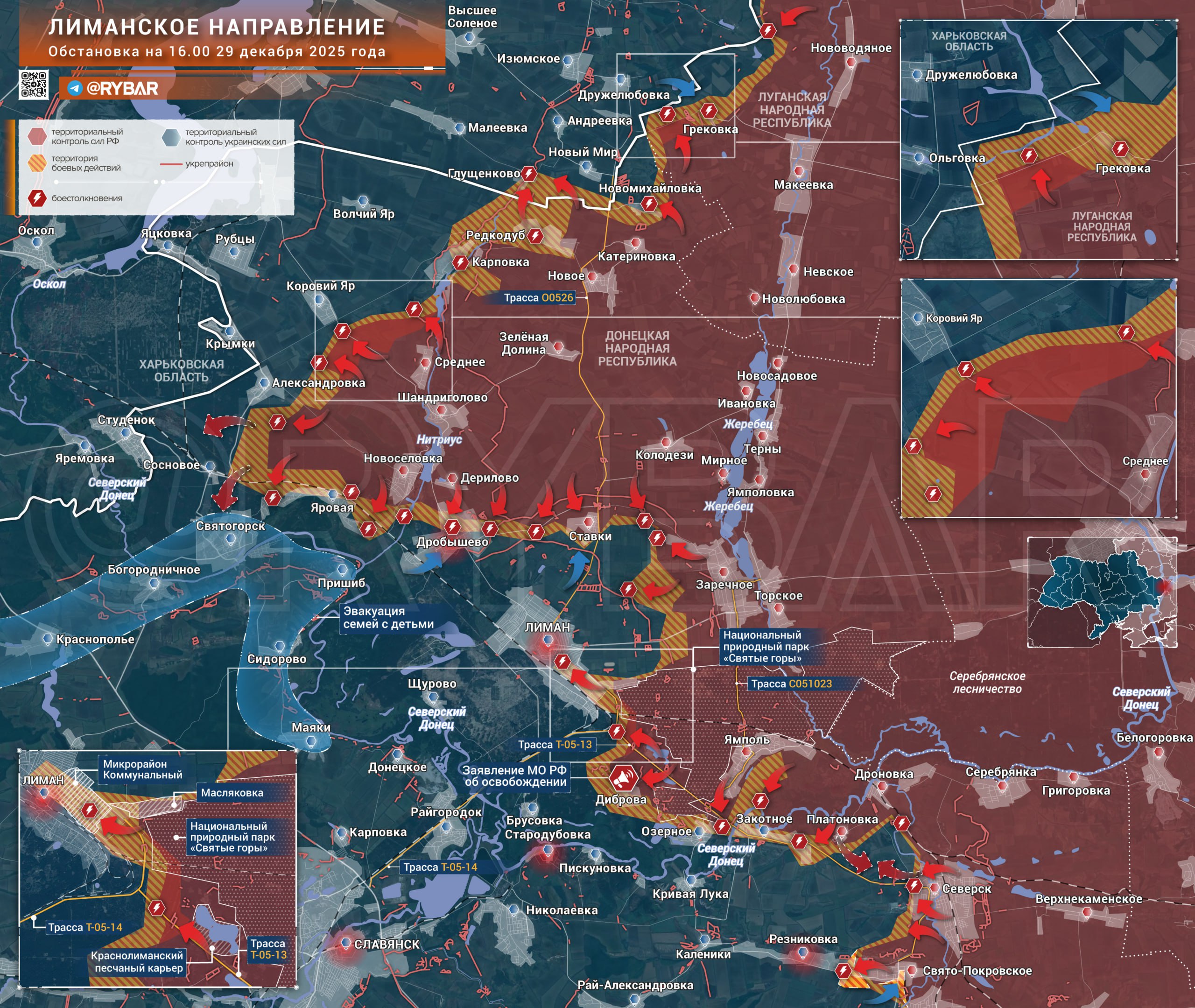 Как отметил Борис Рожин, освобождение Дибровы позволит перерезать восточный въезд в Лиман. После зачистки Дробышево на западе от города его гарнизон останется зависимым от единственного маршрута по трассе Т-05-14 со стороны Старого Каравана, на который будут активно слетаться российские дроны.
