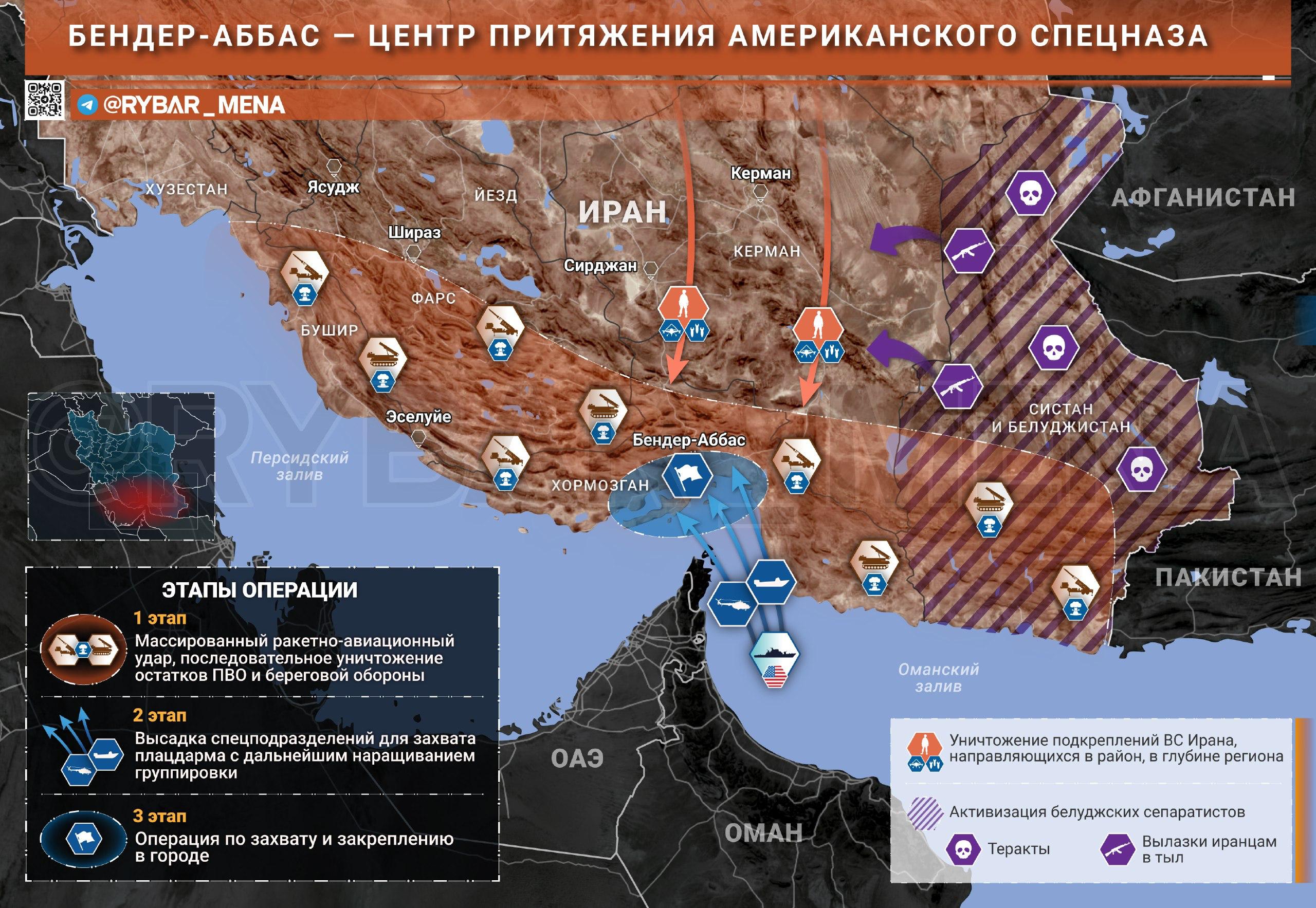 В контексте гипотетической наземной операции ВС США в Иране интересен сценарий ограниченной высадки десанта на один из ключевых объектов республики. Например, в район Бендер-Аббаса, являющегося важнейшим южным портом и узлом экспорта нефти.