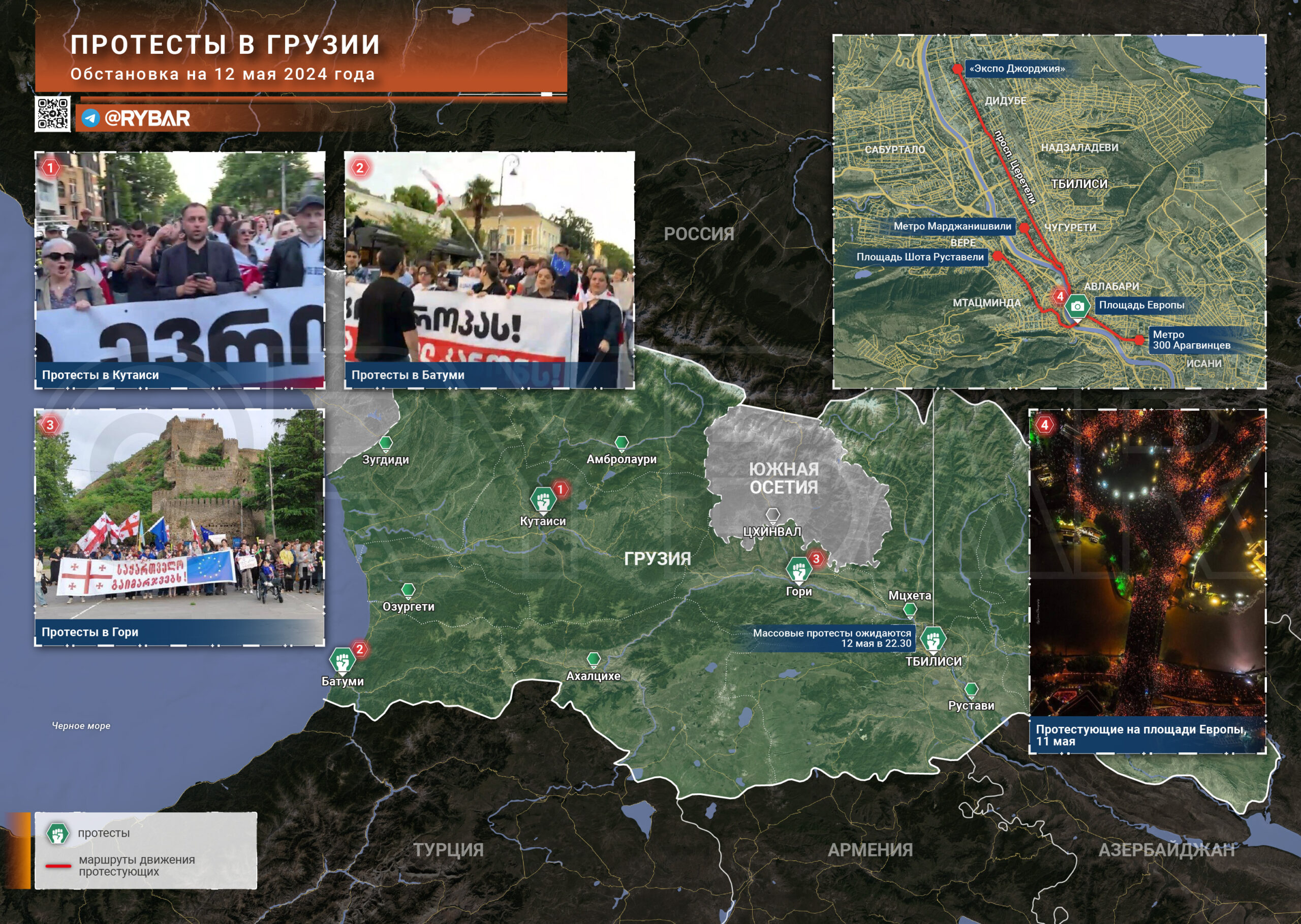10 мая в Батуми, Кутаиси и Гори прошли немногочисленные митинги сторонников оппозиции и прозападных структур, где вновь были призывы к отмене законопроекта. Обошлось без серьёзных инцидентов.