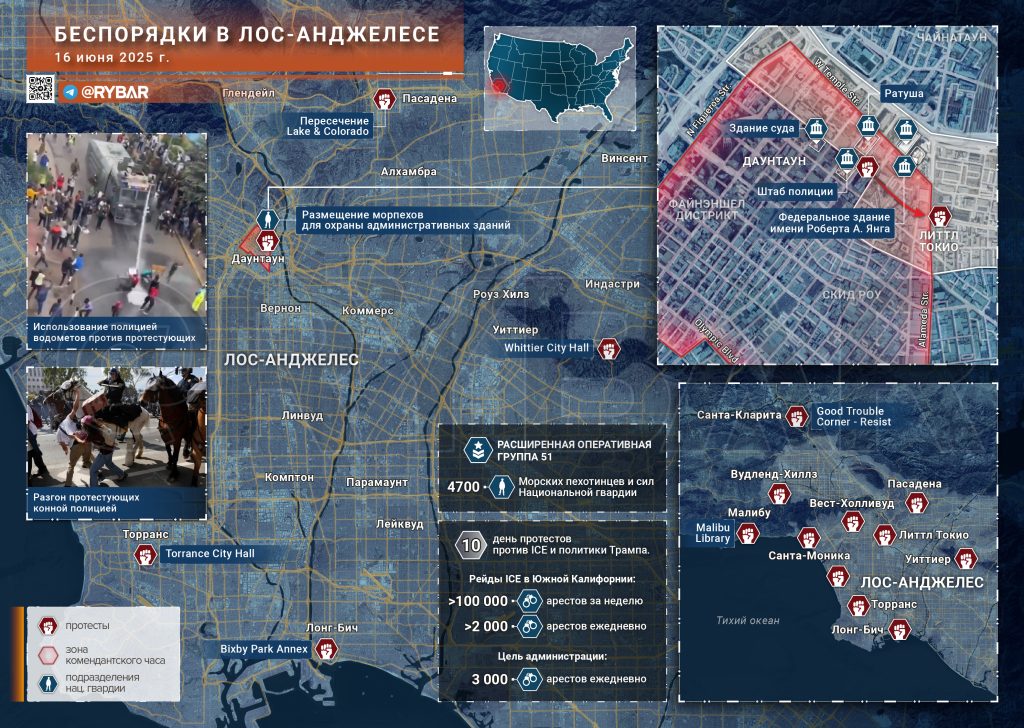 В американском инфополе продолжается обсуждение массовых протестов против миграционной политики Дональда Трампа, а также ответа на них со стороны федеральных властей.
