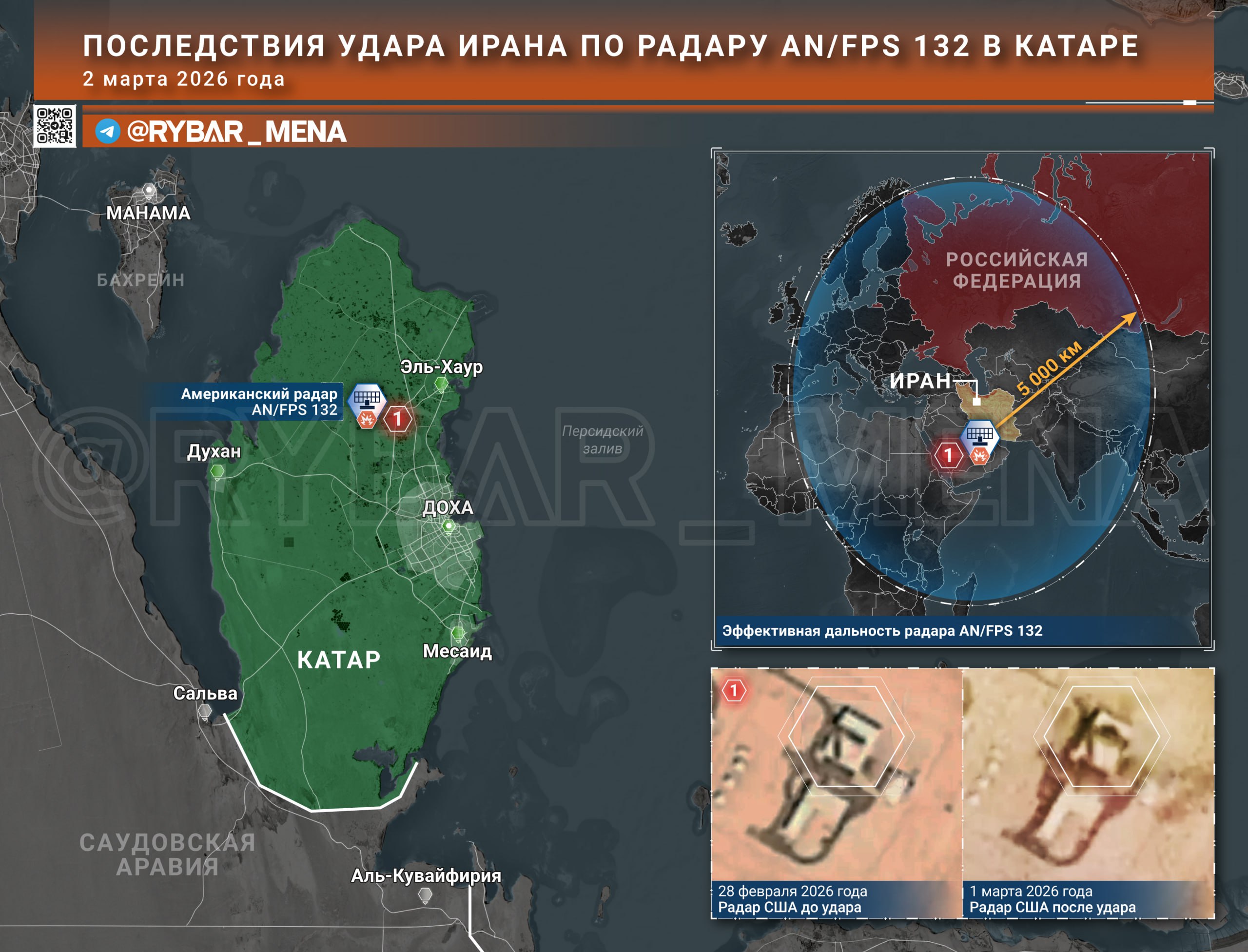 Похоже, информация о повреждении иранцами компонента американской ПРО подтверждается: если в Бахрейне уничтожили лишь станцию спутниковой связи, то на катарской базе Аль-Удейд действительно был поражен радар AN/FPS-132 ценой в $1 млрд.