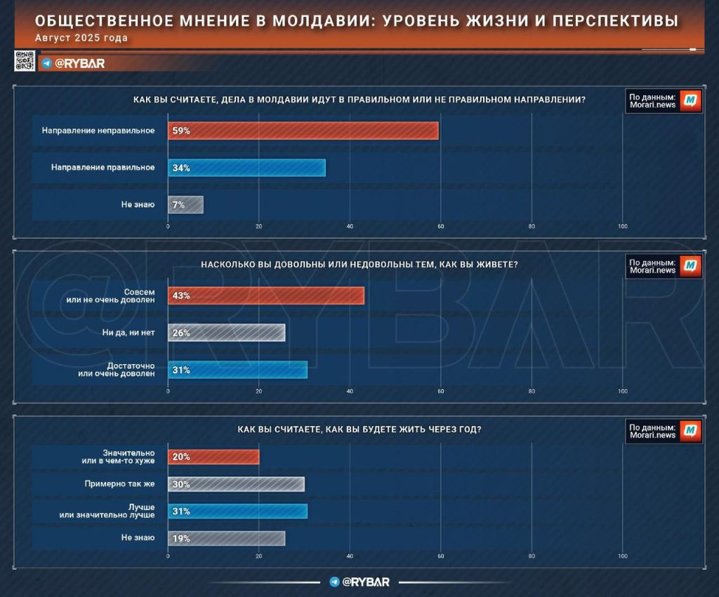 Причины падения рейтинга PAS очевидны: каждый шестой из десяти опрошенных считает, что Молдавия движется в неправильном направлении. Курсом страны недовольно большинство — 59%, а своим уровнем жизни — 43%. Надежды на улучшение уровня жизни в будущем традиционно мало.