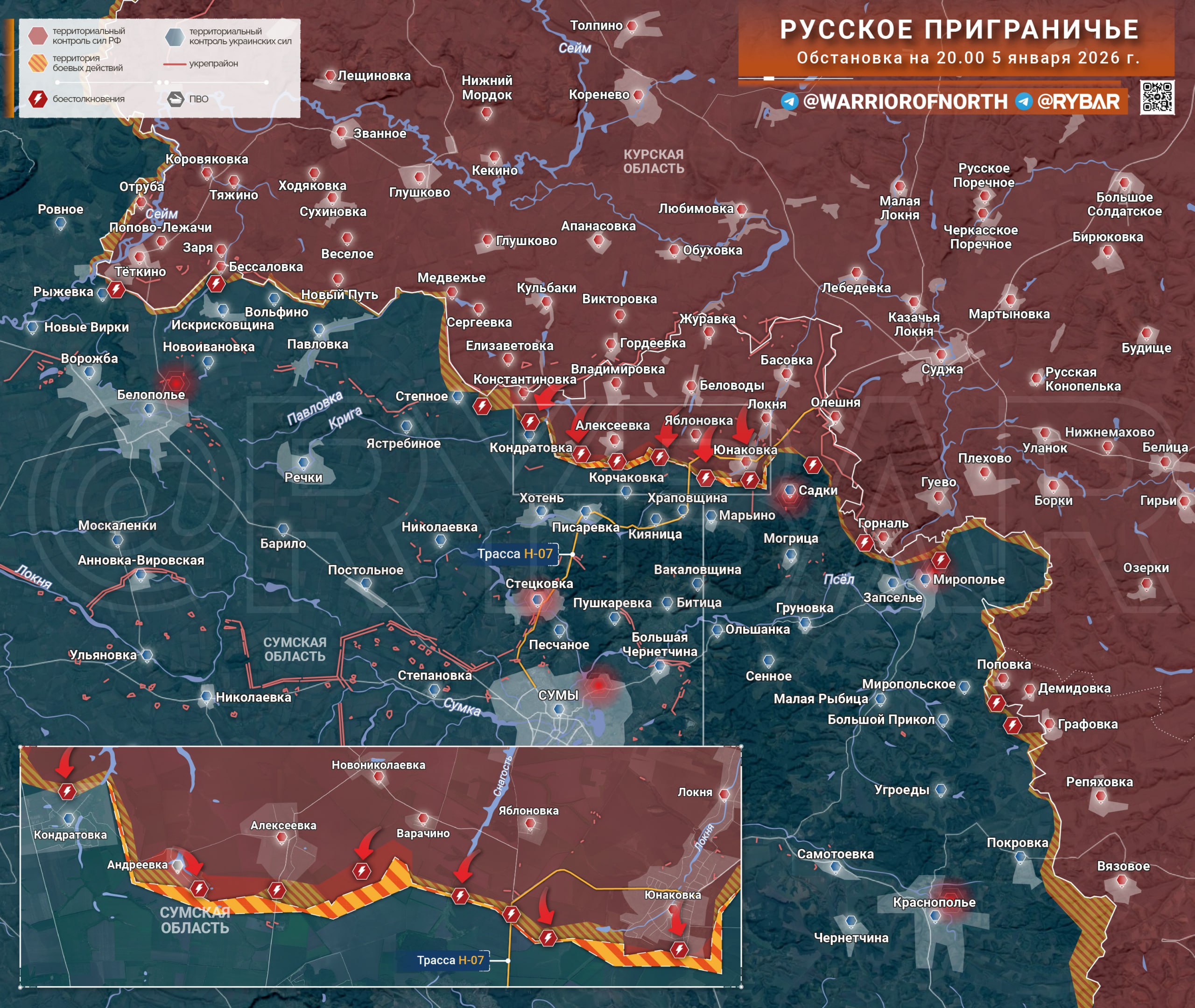 Движение к северу от Сум началось еще в том году, когда подразделения российских войск в результате тяжелых боев смогли удержать рубеж КондратовкаЮнаковка и сохранить плацдарм на территории Сумской области. И теперь российские подразделения понемногу продвигаются дальше на юг, планомерно наращивая темпы и «открывая» новые участки наступления.