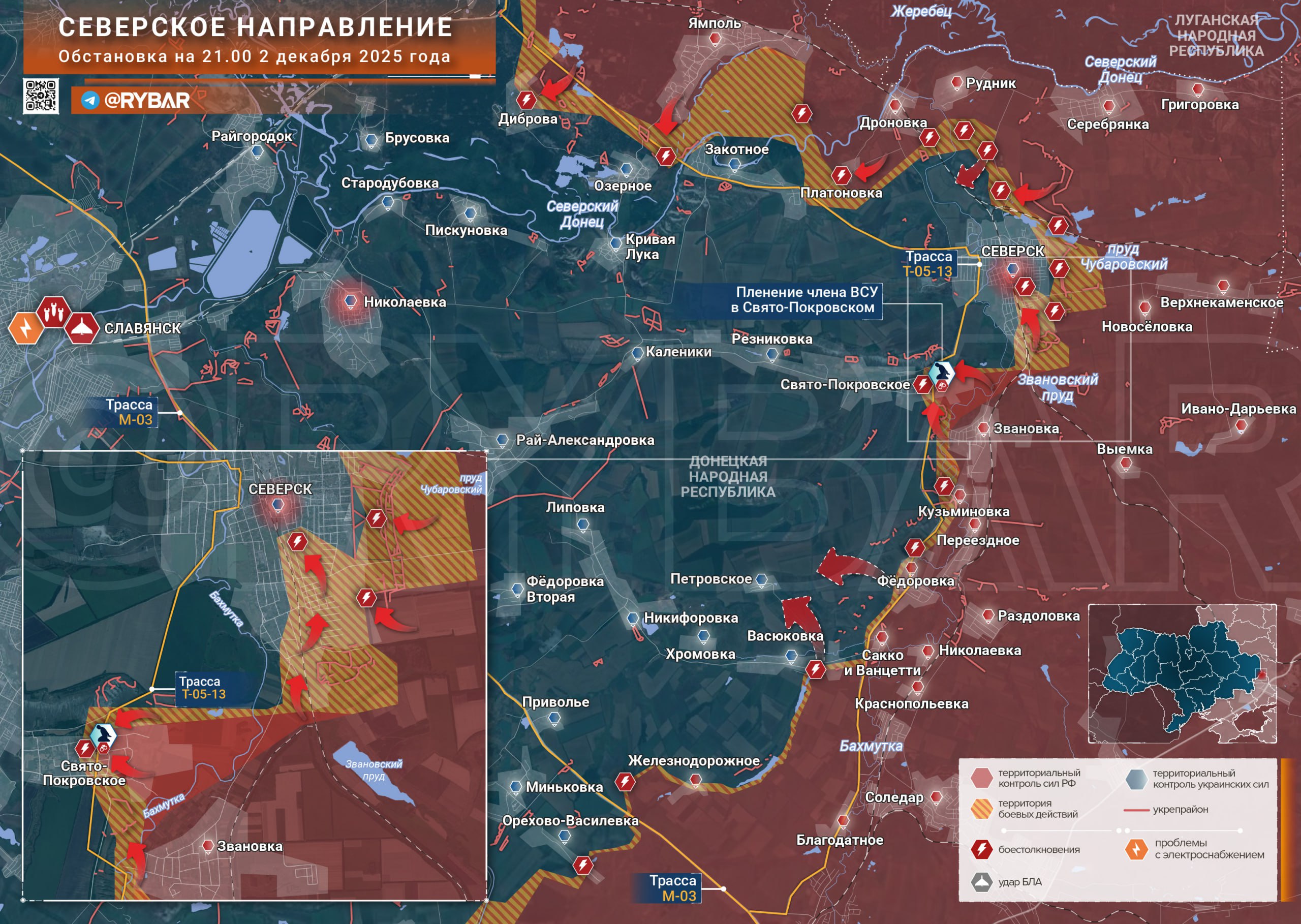 В самом Северске продолжаются бои. Согласно официальным заявлениям, российские штурмовые группы уверенно продвигаются в городе. Так что и отсюда весьма вероятно появление более конкретных новостей об успехах.