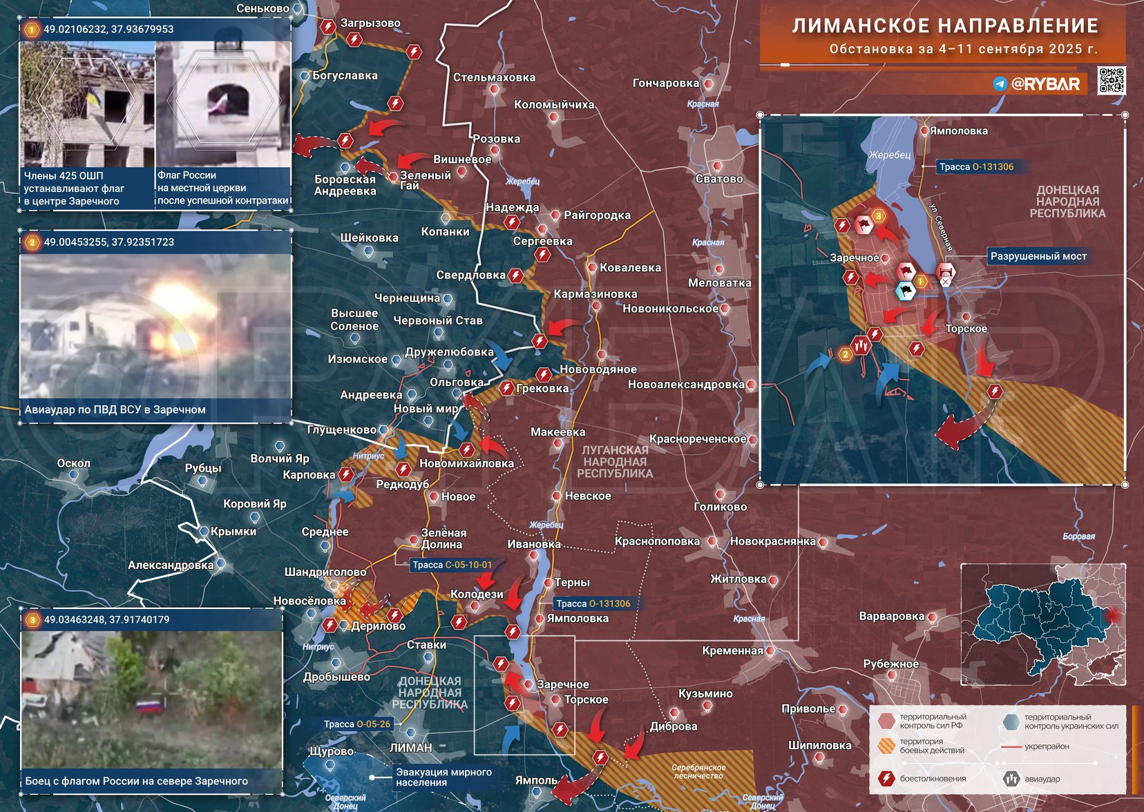 На южном фланге направления российские подразделения после установления контроля над большей частью Торского выдавливают ВСУ из Заречного. Противник предпринимает контратаки с целью «флаговтыка» и дезинформации мониторинговых сообществ, однако на деле успехов у него нет.