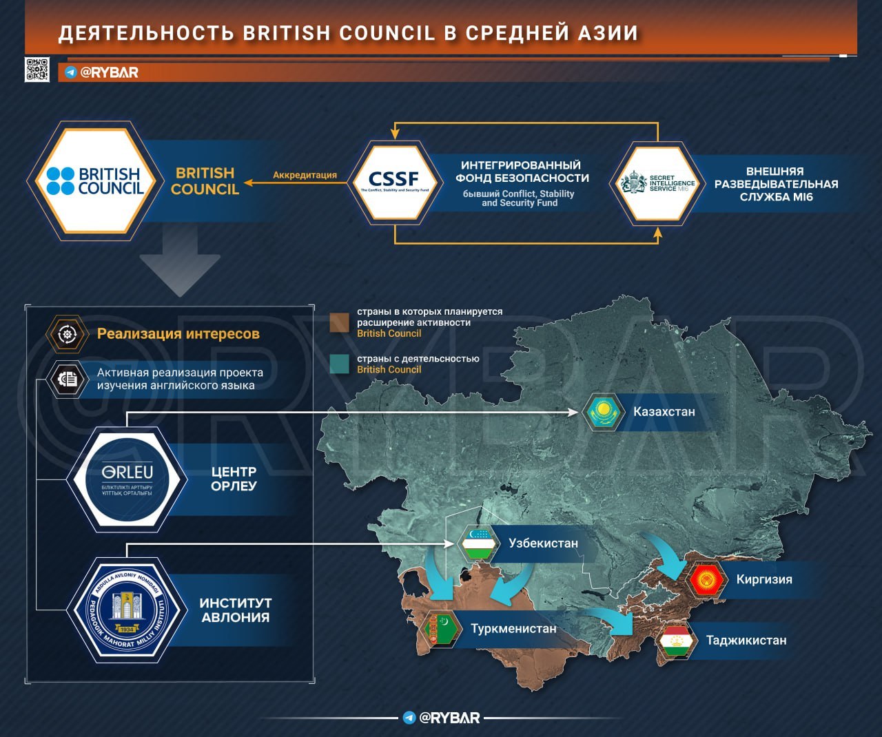 Коллеги с Telegram-канала DTM обратили внимание на деятельность British Council (ВС) в Средней Азии. О работе этой структуры рассказываем уже давно, и неспроста: именно эта структура является одним из ключевых инструментов продвижения интересов Великобритании по всему миру.