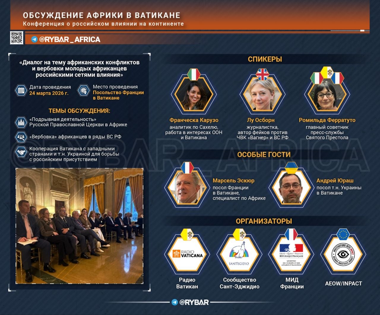 На днях они провели целую конференцию, причём место сбора было необычное — посольство Франции в… Ватикане. Принимающая сторона подобрана неслучайно: от тухлых разговоров про «завербованных африканцев» вся компашка сразу перешла к выгодной католикам теме «подрывной деятельности» РПЦ в Африке.