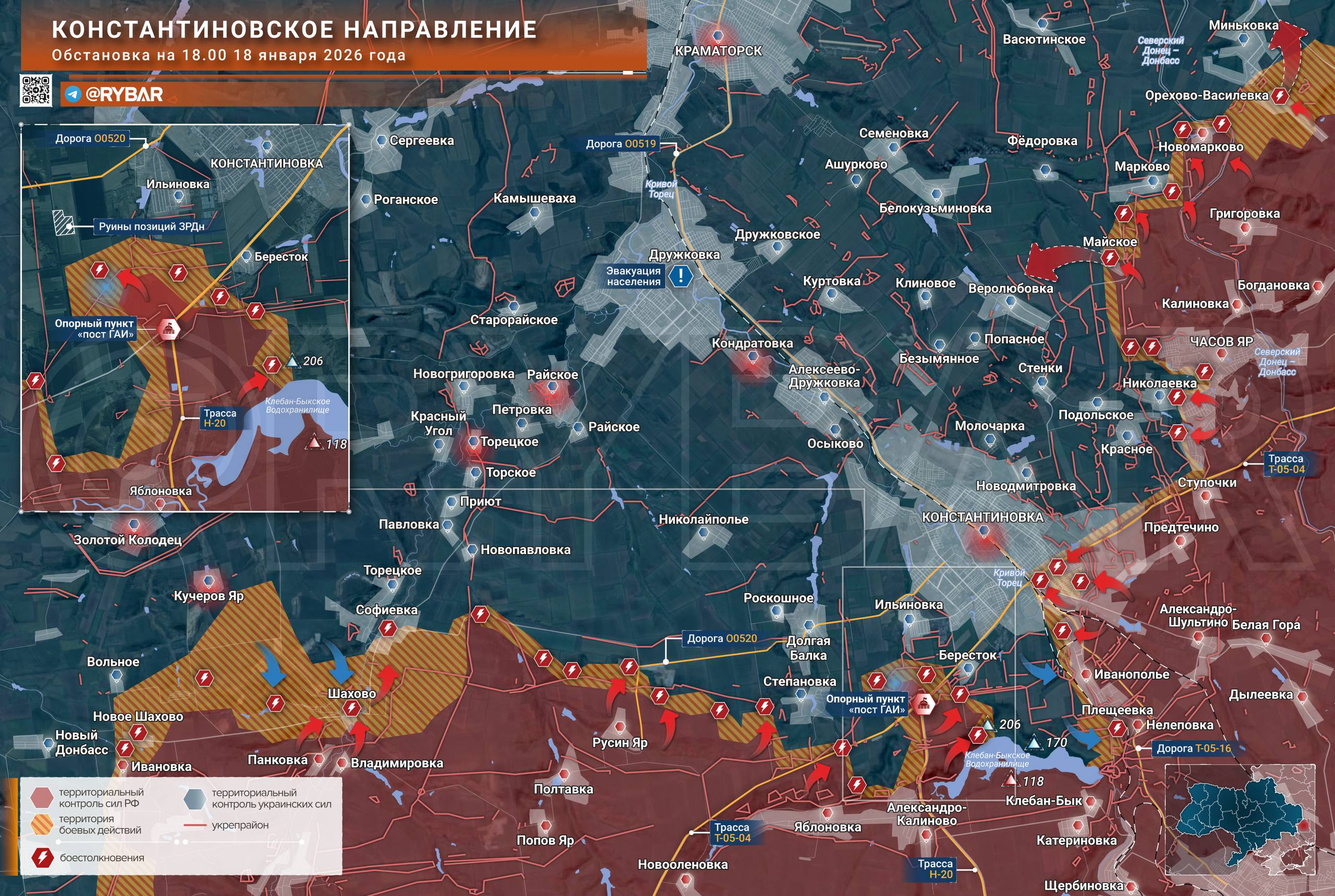Наступление частей ГВ «Юг» планомерно развивается. Несмотря на контратаки противника, ВС РФ расширяют зону контроля на подступах к Константиновке.