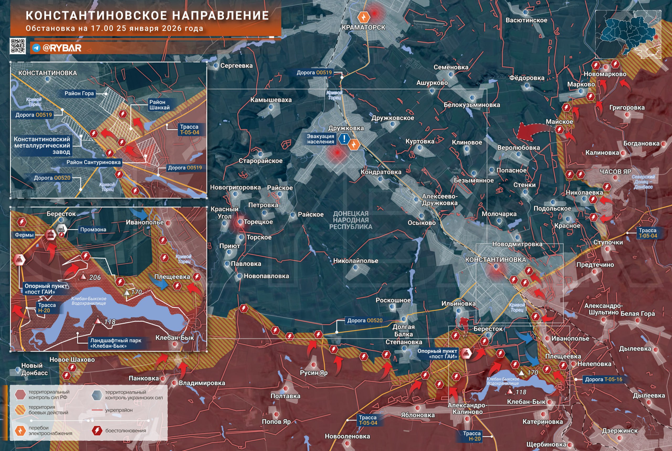 Несмотря на продолжающиеся холода, интенсивность боевых действий на направлении возрастает, а накал битвы за Константиновку постепенно растет. Противник пытается нарастить плотность войск в городе, чему отчасти способствует погода.